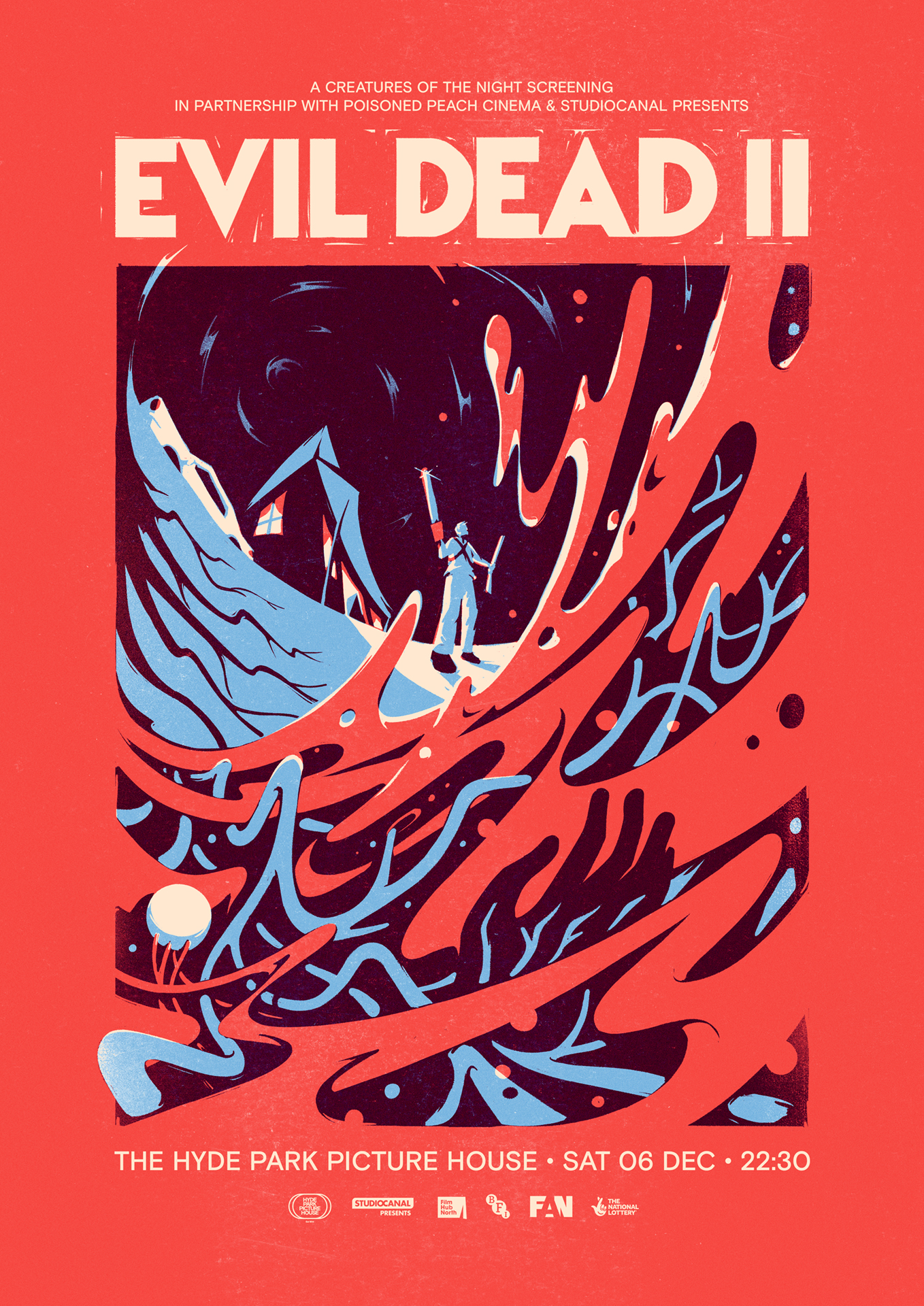 Poster for Hyde Park Picture House & StudioCanal’s screening of the Sam Raimi horror classic Evil Dead II.